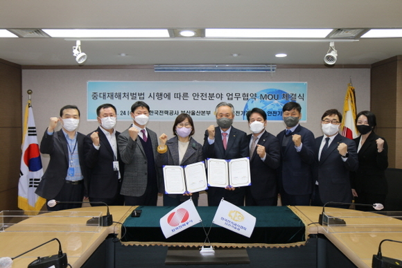 한국전력공사 부산울산본부는 24일 한국전기공사협회 안전기술원과 중대재해처벌법 시행에 따른 업무협약을 체결했다고 밝혔다.