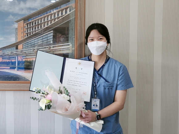 김미애 간호사는 ‘소화기계 암환자의 외상 후 성장과 건강증진행위가 삶의 질에 미치는 영향’을 주제로 연구를 진행해 간호 실무와 간호 학문 발전에 기여한 공로를 인정받았다.