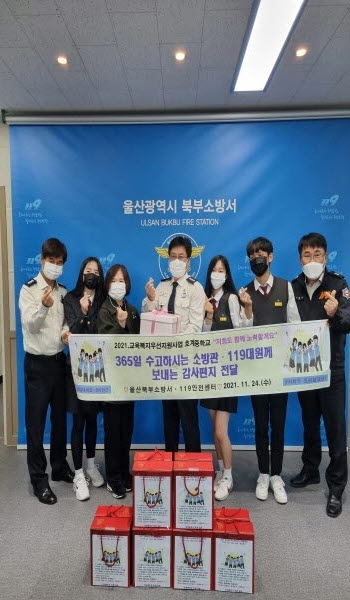 울산 북부소방서(서장 박용래)는 지난 24일 북구 호계중학교 1학년 학생들이 소방서를 방문해 손편지 350통을 전달했다고 밝혔다.