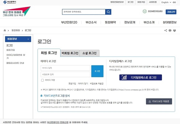 이번에 디지털 원패스 방식이 추가되면 ‘디지털 원패스’ ID를 활용해 부산시 홈페이지에서 별도의 아이디 생성 과정 없이 바로 홈페이지를 이용할 수 있게 된다.