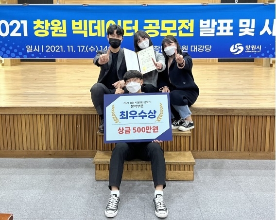 경상국립대학교(GNU) 자연과학대학 정보통계학과 기계학습연구실(지도교수 김영순)의 신통방통 팀(석사과정 조귀래, 학사과정 강유빈·김채민·백범수)이 창원시가 주최한 ‘2021 창원시 빅데이터 공모전’에서 분석 부문 최우수상을 수상했다.
