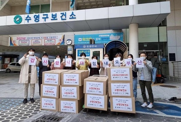 특히 이번 대상에는 부산시의 코로나19 컨트롤타워 역할을 하는 시청 시민건강국도 포함됐다. 대상자들에게는 여러 먹거리가 담긴 간식박스가 전달됐다.