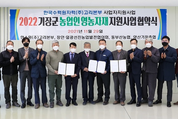 한국수력원자력 고리원자력본부는 지난 29일 부산시 기장군 장안읍 농축산물 직판장에서 ‘기장군 농업인 영농자재 지원사업’ 협약식을 체결했다.