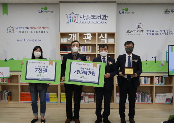 한국토지주택공사(이하 LH)는 30일 전북 익산인화 행복주택 단지 내 작은도서관에서 ‘LH 행복마을 작은도서관 개관식’을 개최하고, 도서와 기부금을 전달했다고 밝혔다.
