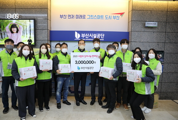 부산시설공단이 30일 노-사 합동으로 부산 거주 소외계층을 대상으로 김치와 떡국 떡을 배달하는 나눔 봉사를 전개했다고 밝혔다.