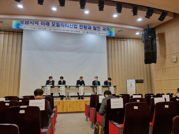 경남테크노파크(이하 경남TP)와 한국은행 경남본부는 지난달 30일 오후 2시 경남TP 과학기술에너지센터 국제회의실에서 지역 산·학·연 전문가 50여 명이 참석한 가운데 ‘경남지역 미래 모빌리티산업 현황과 발전과제’ 세미나를 개최했다.
