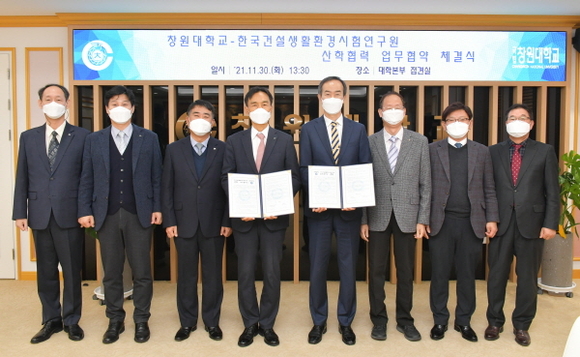 창원대학교는 대학본부에서 한국건설생활환경시험연구원과 상호 기술지원 및 정보공유, 기업 시험인증과 평가 업무 등의 협력을 골자로 한 산학업무협약을 체결했다고 1일 밝혔다.
