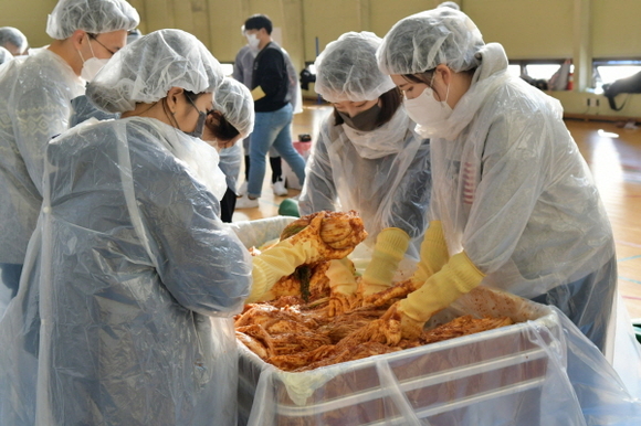 신라대 신라사회봉사센터는 김충석 신라대 총장, 교직원, 재학생, 외국인 유학생 등 50여 명의 봉사자와 사상구자원봉사센터가 함께 김장김치 150통(750kg)을 직접 담가 사상구 지역 주민들에게 전달했다고 2일 밝혔다.