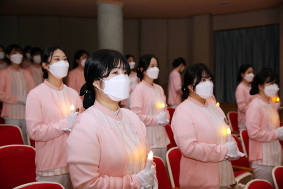 간호학과 윤선영 학과장은 “나이팅게일의 숭고한 희생정신을 기억해 환자의 생명을 보호하기 위해 애써달라”며 “코로나 상황이라 3학년은 실습과정에서, 4학년은 취업 후 보건의료현장에서 어려움이 많겠지만 자신의 건강에 유의하며 환자를 위해 최선을 다해달라”고 당부했다.
