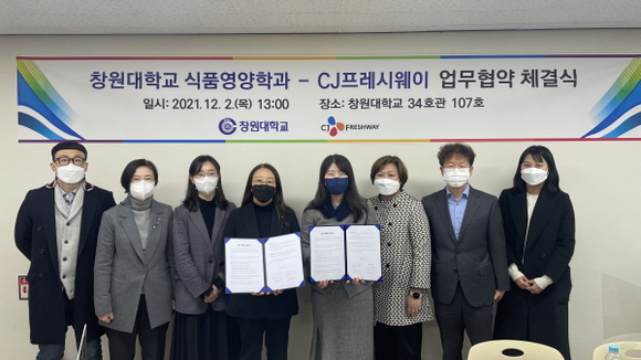 창원대학교 식품영양학과는 CJ프레시웨이와 ‘산학협력 활성화를 위한 상호교류 및 업무협력 협약식’을 개최했다고 6일 밝혔다.