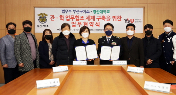 영산대학교 경찰행정학과가 지난 1일 양산캠퍼스 천성학관에서 부산구치소와 관학협정을 체결했다. 이번 관학협정을 통해 양 기관은 상호 학술강연, 워크숍 등을 개최하기로 했다.