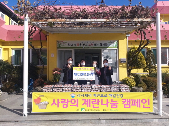 경남농협은 7일 창원시 성산구 사파동 소재 보육시설인 동보원을 찾아 계란 30구 250판(7500개)을 전달하는 ‘사랑의 계란나눔, 에그투게더(Egg Together) 캠페인’을 실시했다.