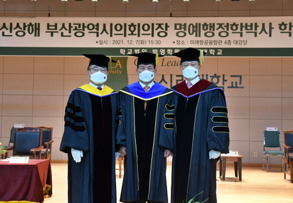신라대학교는 7일 오후 3시 30분 미래항공융합관에서 부산광역시의회 신상해 의장에게 명예 행정학 박사 학위를 수여했다고 밝혔다.