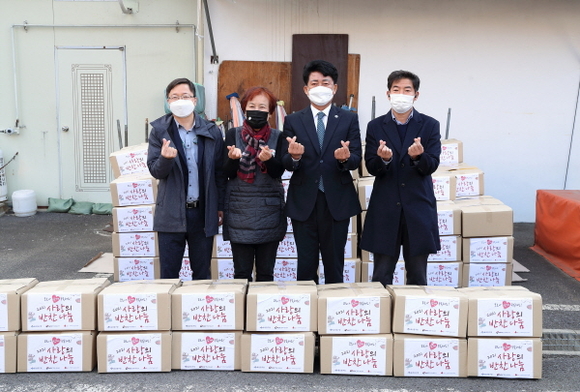 이번 행사는 코로나19로 어려움을 겪는 태화시장 소상공인을 돕는 동시에 지역농가와 중구 홀몸노인세대를 지원하고자 마련됐다. 태화시장상인회와 협업을 통해 제작된 꾸러미는 어르신의 기호를 고려해 김장김치, 젓갈, 깻잎, 멸치볶음, 맛김 등 다양한 종류로 구성됐다.