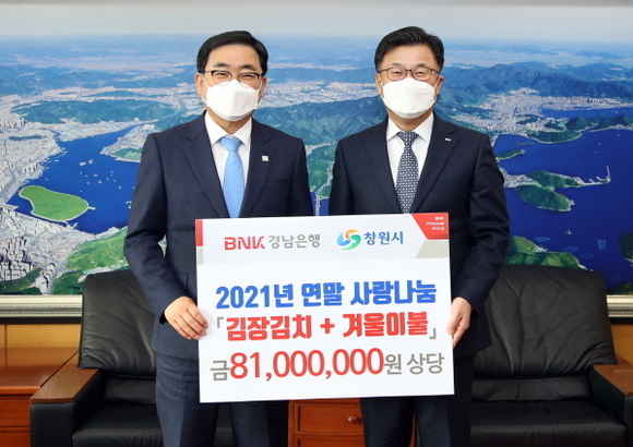 경남은행이 기탁한 8100만원 상당의 김장김치와 겨울 이불은 창원시가 추천한 지역 소외계층 가정 1600세대와 450세대에 각각 나눠 지원된다.