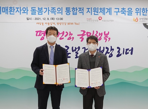 국민건강보험공단 부산울산경남지역본부는 지난 9일 부산광역시 광역치매센터와 ‘치매환자 및 돌봄가족의 통합적 지원체계 구축을 위한 업무협약’을 체결했다고 10일 밝혔다.