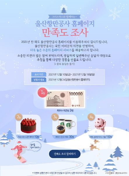 만족도 조사에 참여를 원하는 국민은 UPA 홈페이지 공지사항이나 배너를 통해 누구나 참여할 수 있으며, 참여자를 대상으로 소정의 경품 이벤트도 마련됐다.