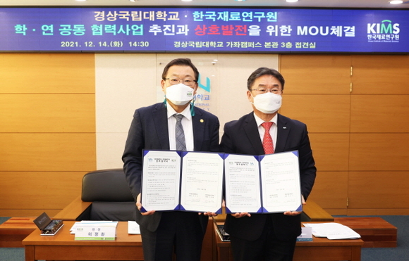 경상국립대학교(GNU)와 한국재료연구원은 14일 오후 2시 30분 가좌캠퍼스 본관 3층 접견실에서 학·연 공동 협력사업을 추진, 상호 발전하기 위해 업무협약을 체결했다.