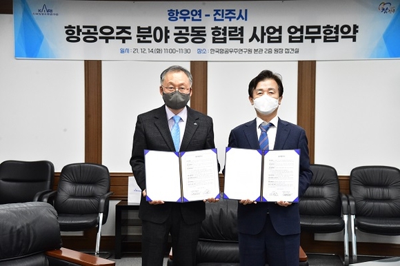 경남 진주시는 14일 한국항공우주연구원(항우연)과 항공우주 분야 공동협력을 위한 업무협약을 체결했다.