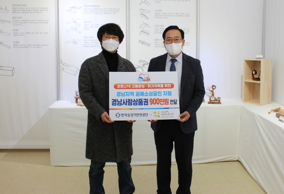 한국승강기안전공단은 코로나19로 어려움을 겪는 지역공예인의 창작활동을 후원하기 위해 진주시 명석면에 있는 진주공예창작지원센터에 900만원 상당의 상품권을 15일 전달했다.