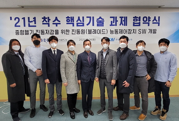 한국항공우주산업㈜이 지난 14일 한국항공우주연구원(KARI), 국방기술진흥연구소(국기연)와 ‘중형헬기 진동 저감 진동원 능동제어장치 소프트웨어(SW) 개발’ 협약을 체결했다고 16일 밝혔다.