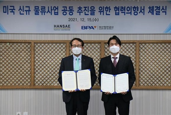 부산항만공사(BPA)가 지난 15일 부산 본사에서 한세실업㈜과 ‘미국 서부 LA, LB 지역 신규 물류사업 공동 추진’을 위한 협력 의향서를 체결했다고 16일 밝혔다.