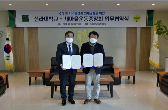 신라대학교와 새마을운동중앙회가 국가와 지역 발전에 기여할 인재 양성을 위해 업무협약을 맺었다.