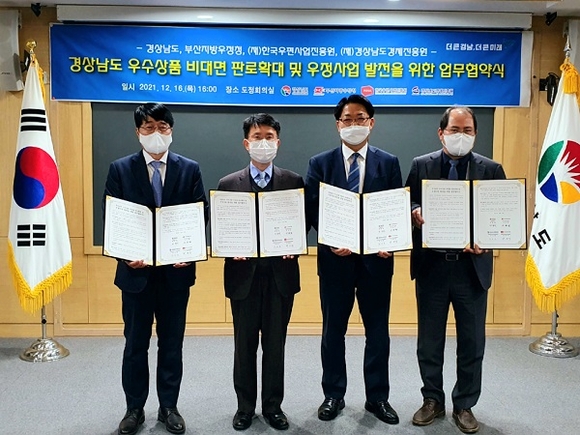 부산지방우정청은 우체국쇼핑을 통한 경남도 우수 상품의 비대면 판로확대를 위해 16일 경남도 등과 업무협약을 체결했다고 밝혔다.