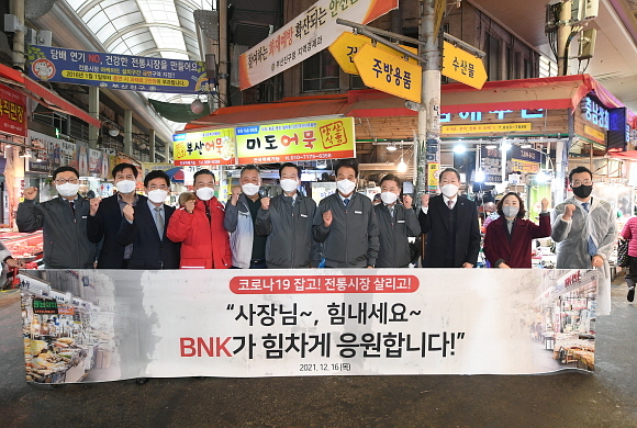 BNK금융그룹이 코로나19 여파로 침체한 동남권 전통시장의 활기를 되찾기 위해 어제(16일), 오늘 양일간 ‘전통시장 활성화 캠페인을 시행해 총 1억 5000만 상당의 물품을 구매했다고 밝혔다.