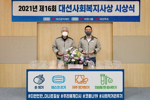 부산 향토기업 BN그룹 산하 대선주조㈜가 설립한 대선공익재단이 17일 ‘제16회 대선사회복지사상 시상식’을 온라인으로 개최했다고 밝혔다.