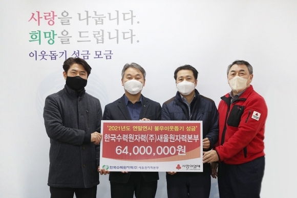 한국수력원자력 새울원자력본부는 17일 KBS울산방송국을 찾아 연말 이웃돕기 성금 6400만원을 기탁했다.