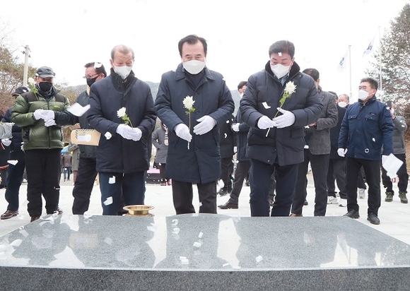 서 군수는 추도사를 통해 “무고하게 돌아가신 희생자 분과 유족 여러분들에게 진심으로 위로와 감사의 인사를 드린다. 추모공원 조성은 우리지역에서 발생한 모든 민간인 희생자를 위로하고, 우리 후손들에게는 자유와 평화의 교훈을 전달하는 산교육의 장이 될 것으로 기대하고 있다”고 말했다.