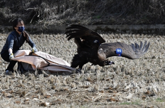 울산시설공단은 올해 초 야생동물구조관리센터에서 치료 후 방생된 독수리 두 마리(윙태그 66·67) 중 한 마리(윙태그 67)가 건강한 모습으로 울산에 다시 찾아왔다고 밝혔다.