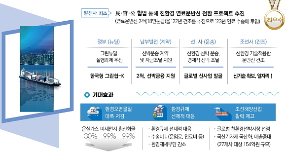 이승우 남부발전 사장은 “LNG 연료추진선 도입사업은 탄소배출 저감은 물론 발전산업 생태계 전반에 새로운 가치를 창출한 사례”라며 “향후 탄소중립 달성 등 친환경 경영을 위해 다방면의 업무 분야에서 노력하겠다”고 전했다.