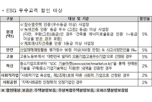 주택도시보증공사(HUG)가 오늘(21일)부터 ‘ESG 우수고객’을 대상으로 ‘주택분양 보증료’의 할인을 시행한다고 발표했다.