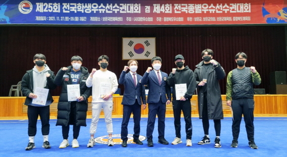 사단법인 대한우슈협회가 주최한 이번 대회에서 영산대는 정주현 학생이 60kg 이하 체급에서 산타 1위와 등타 1위를, 송우용 학생이 65kg 이하에서 산타 1위, 등타 1위를 차지했다.
