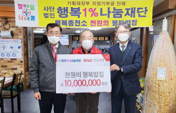 BNK경남은행은 (사)행복1%나눔재단에 후원금 1000만원을 기탁했다고 22일 밝혔다.
