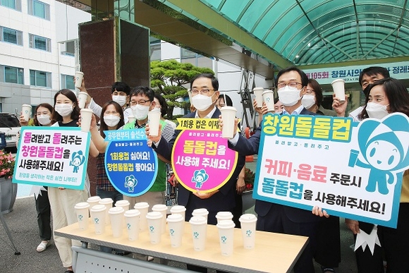 시청사 주변 카페 17개소와 협약해 1회용컵 대신 공유텀블러를 사용하는 사업을 실시했다. '돌려받고 돌려준다' 의미인 돌돌컵은 해당카페에 반납하는 조건으로 시민 누구나 '창원돌돌컵' 사용이 가능하다. 돌돌컵 사용으로 연간 1회용컵 22만 8360개를 줄이고, 온실가스 3.8톤 감소, 나무 576그루 식재 효과를 가져올 것으로 예상된다.