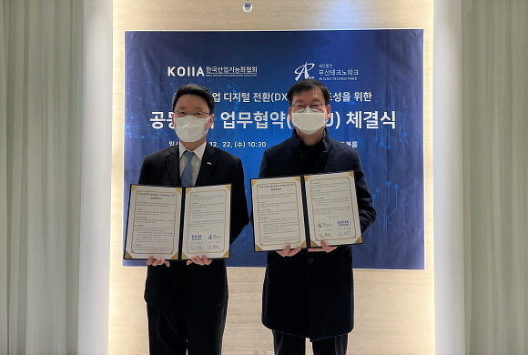 부산테크노파크가 지난 22일 서울 코엑스에서 한국산업지능화협회와 함께 ‘부산지역 산업 디지털 전환(DX) 생태계 조성 위한 협약’을 체결했다고 23일 밝혔다.