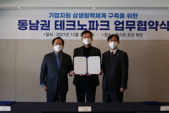부산테크노파크(이하 부산TP)는 지난 23일 울산테크노파크(이하 울산TP) 및 경남테크노파크(이하 경남TP)와 동남권 기업지원 상생협력체계 구축을 위한 업무협약을 체결했다고 밝혔다.