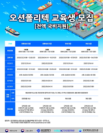 오션폴리텍 과정은 해사고, 해양대 등 지정 교육기관을 졸업하지 않은 일반인을 대상으로 하는 해기사 등용문 프로그램이다. 이는 해양수산부, 고용노동부와 함께 해양산업 분야의 부족한 인력 수급을 위해 추진하는 것으로 교육비, 교재비 등은 전액 국비로 운영된다.