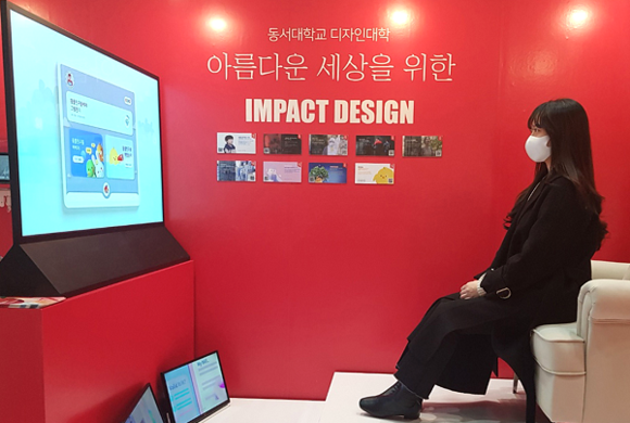 전시 부스 테마는 ‘DESIGN FOR IMPACT’로 미래사회를 위해 ‘지역과 세상에 임팩트를 만드는 디자인대학’이라는 비전을 체혐형 부스 형태로 구성해 관람객들이 직접 경험하며 디자인 작품들을 감상할 수 있도록 구성했다.