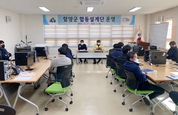 경남 함양군이 27일부터 내년 2월 말까지 건설경기 활성화와 기술직 공무원 역량강화, 예산절감 효과 등을 위해 합동설계단을 운영한다.