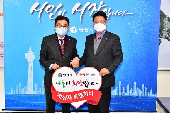 경남 양산시가 대한적십자사 경남지사에 2022년 적십자 특별회비 100만원을 전달했다.