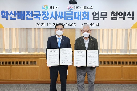 경남 창원시는 30일 오후 시정회의실에서 창원씨름(옛 마산)을 널리 알리고 씨름의 활성화를 도모하기 위해 대한씨름협회와 업무협약(MOU)을 체결했다.