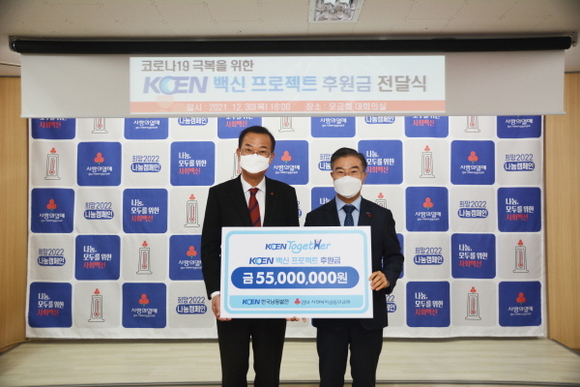 한국남동발전은 30일 경남 창원 경남사회복지공동모금회에서 조영혁 경영지원본부장과 경남사회복지공동모금회 강기철 회장과 유병설 사무처장이 참석한 가운데 ‘KOEN 백신 프로젝트 기탁식’을 시행했다고 밝혔다.