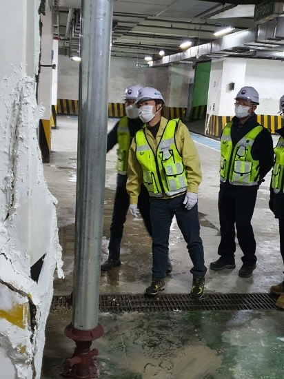 국토안전관리원 박영수 원장은 지난 1일 지하층 기둥 파손과 벽체 균열현상이 발생한 경기도 고양시 마두역 인근 상가 건물을 찾아 구조체 안전상태를 점검했다.