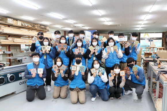 이들은 교육프로그램의 일환으로 울산 북구에 위치한 나무그루 공방에서 목공 냄비받침 제작 및 지역사회에 기부하는 사회공헌 활동을 진행했다. 아울러 울산 시민과 어린이들이 즐겨 찾는 공룡발자국 공원 정화활동을 실시했다.