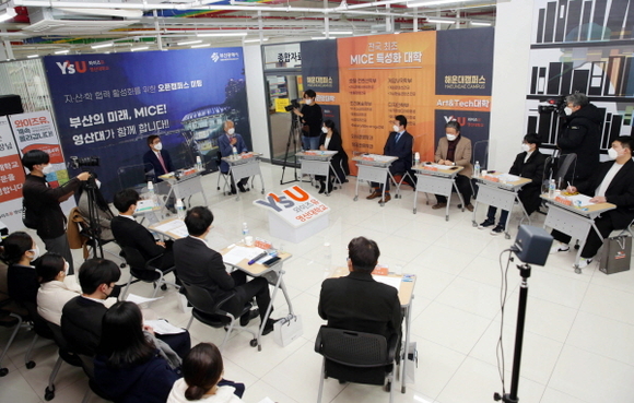새해 첫 부산시의 오픈캠퍼스 미팅이 와이즈유 영산대학교에서 개최됐다. 영산대와 부산광역시는 지난 5일 오후 2시 해운대캠퍼스에서 ‘관광‧마이스와 케이콘텐츠(K-Contents)로 새롭게 도약하는 부산’을 주제로 오픈캠퍼스 미팅을 진행했다.