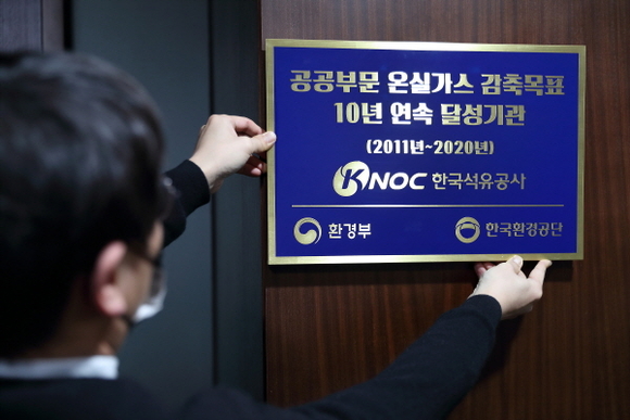 한국석유공사는 환경부가 주최한 ‘2021년 공공부문 온실가스 목표관리제 성과보고회’에서 10년 연속 온실가스 감축 달성 우수기관으로 선정, 공로패 및 우수기관 현판을 받았다고 6일 밝혔다.